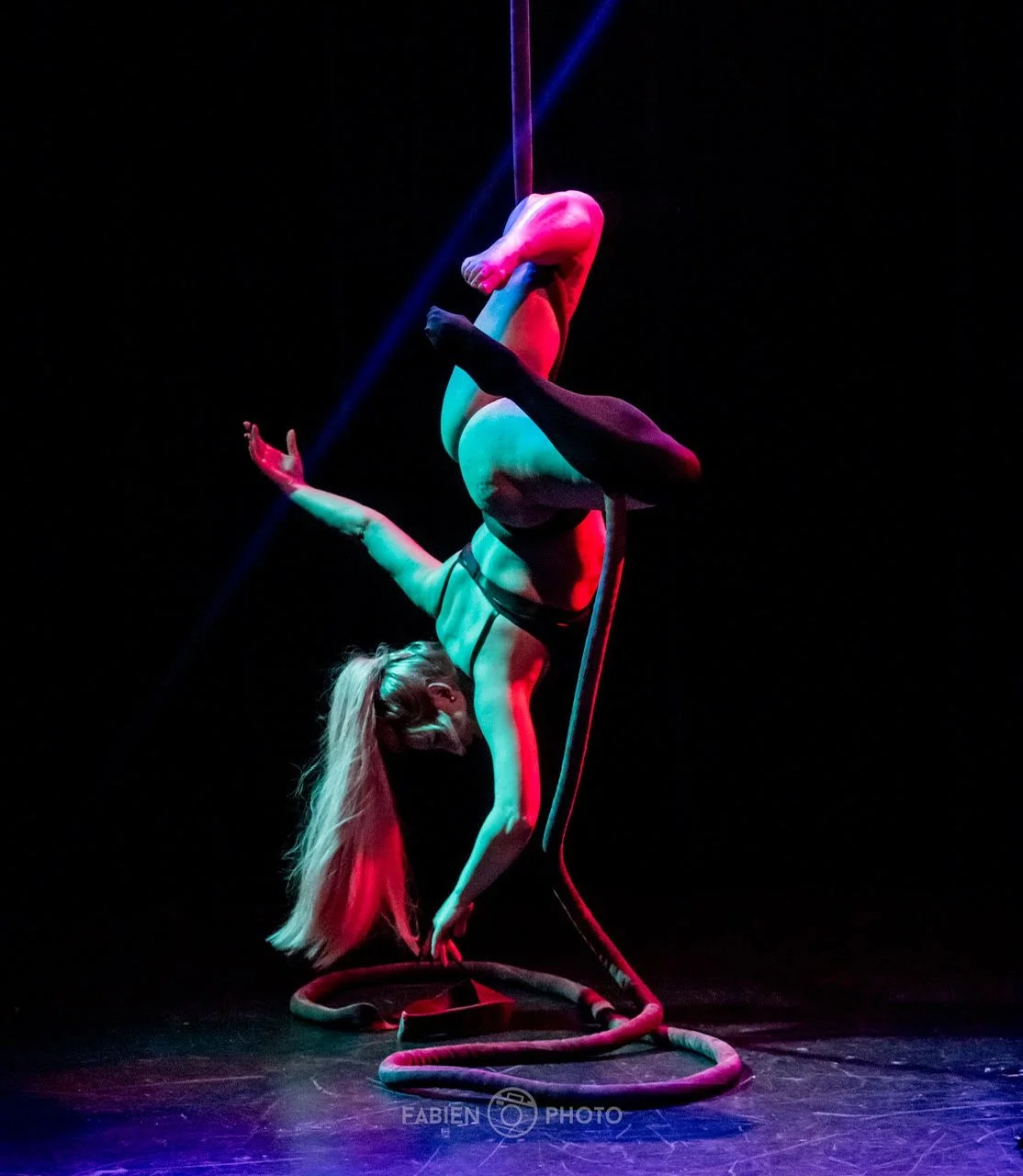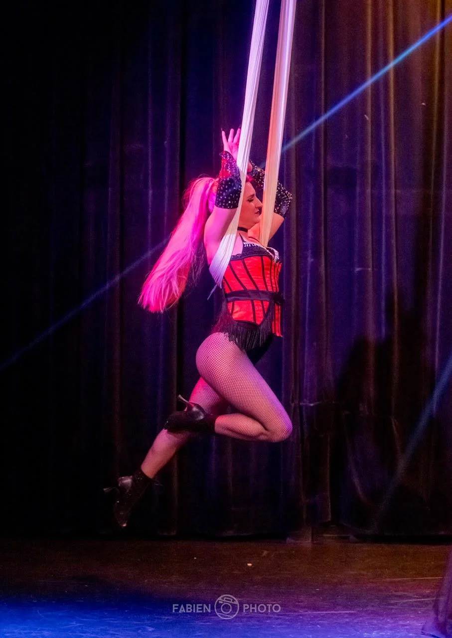 It’s been almost one year working with The Dollface Dames! So it was fun to share the stage with a variety of performers that have been a part of the company even from the beginnings. I brought my Dark Rope Act to this stage! It was a little fun as there are some points where the music gets quiet enough for me to hear anything the audience is saying. It’s fair to say they really thought the rope was a cool apparatus!