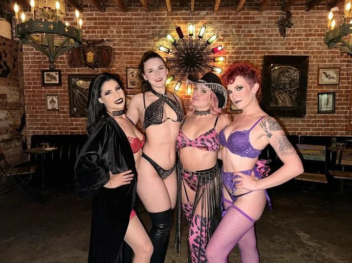 I love Harlesque shows! And when La Cuevita gave me permission to get on the bar, I was thrilled. I also debuted a new costume of a pink leopard cowgirl. I’m particularly proud of the crystal and leather fringe belt I made!